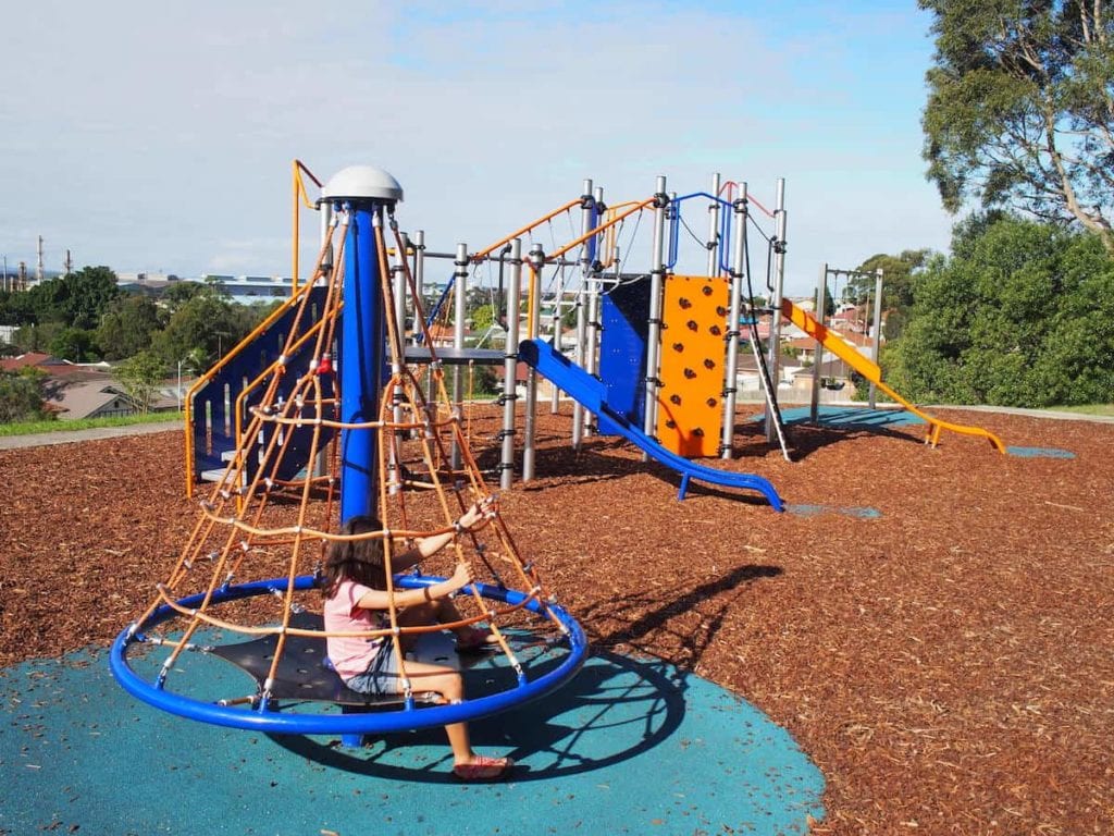 With advanced obstacles including climbing walls, toadstools and a wobbly metal bridge high off the ground, this playground provides challenges to older kids. Read more about Tourle Street Reserve.