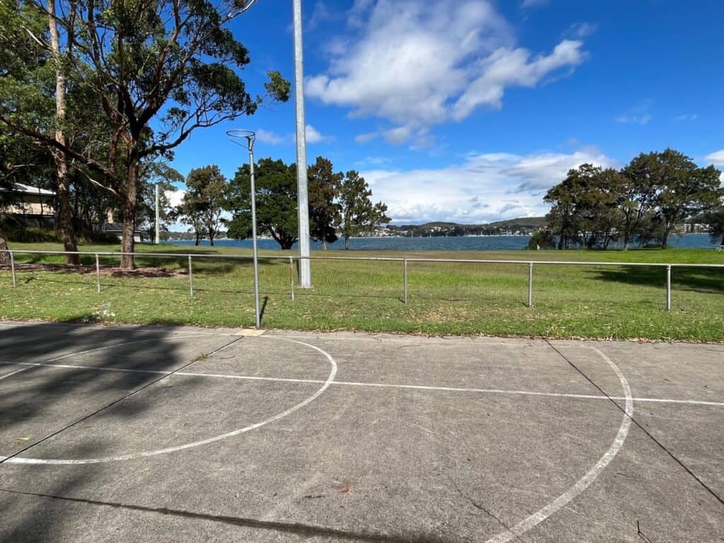 Bolton Point Park also has a court with netball ring at one end and Basketball hoop at the other.