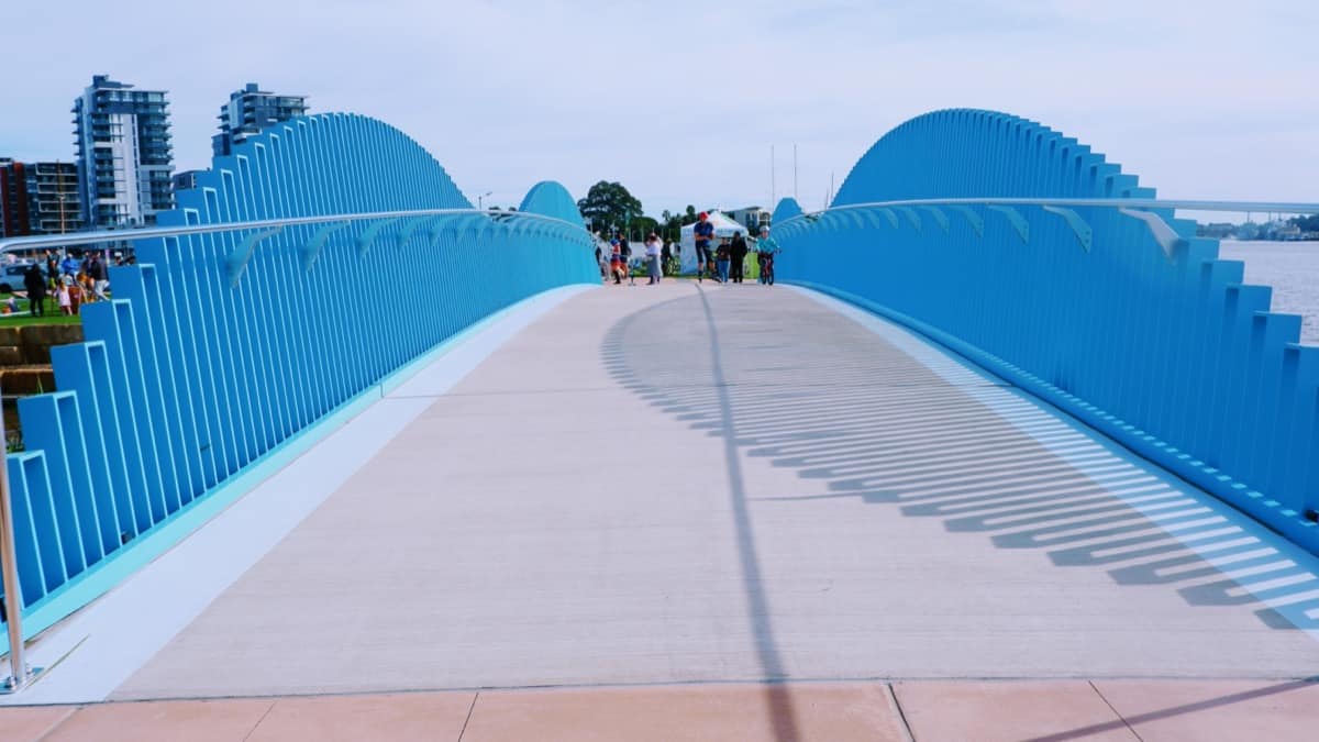Venture along the new waterfront promenade at Honeysuckle and walk across the new Cottage Creek bridge