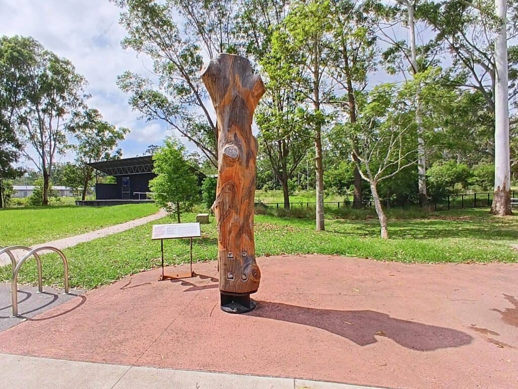 Commemorating the area’s timber milling history, a public art sculpture depicts a log being milled and converted into a picnic table, complete with climbing features and extra seating. An informative sign provides further information on ‘silviculture’ – the science of forestry.