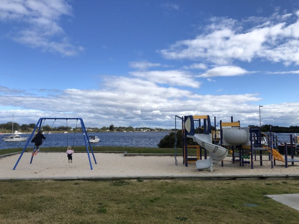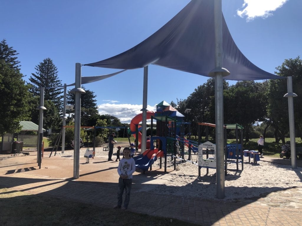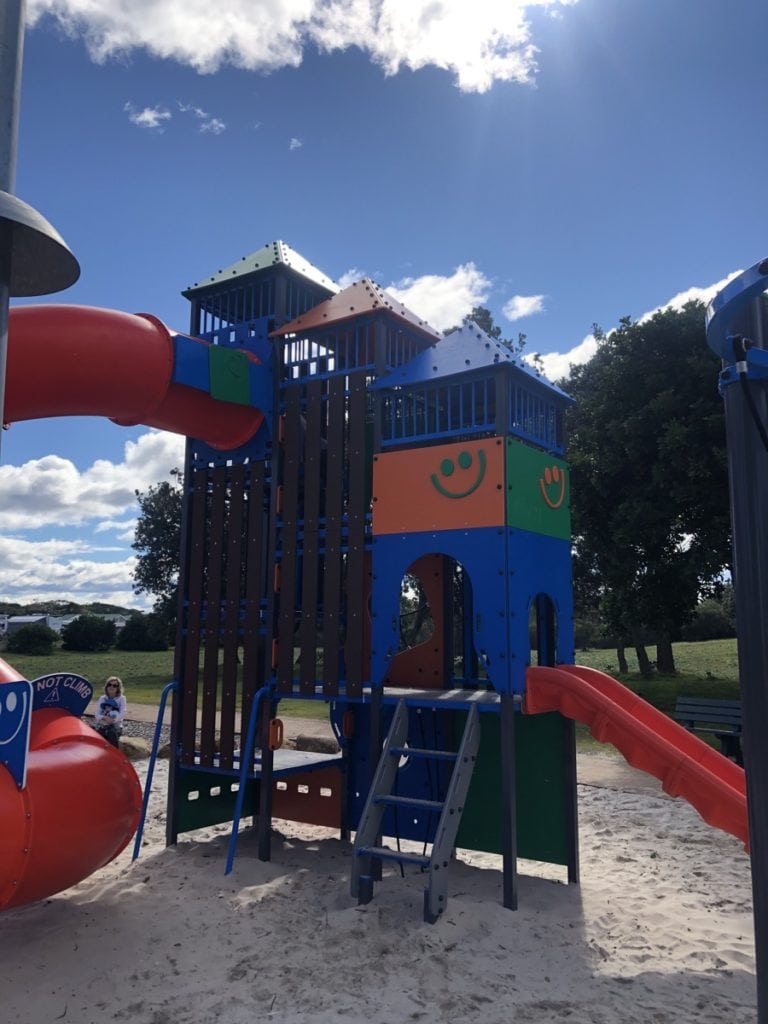 The kids enjoyed the little bush ride amongst the trees and after discovering another playground stop at the entrance to the Jimmy’s Beach caravan park, the kids were keen to give this one a test run too!