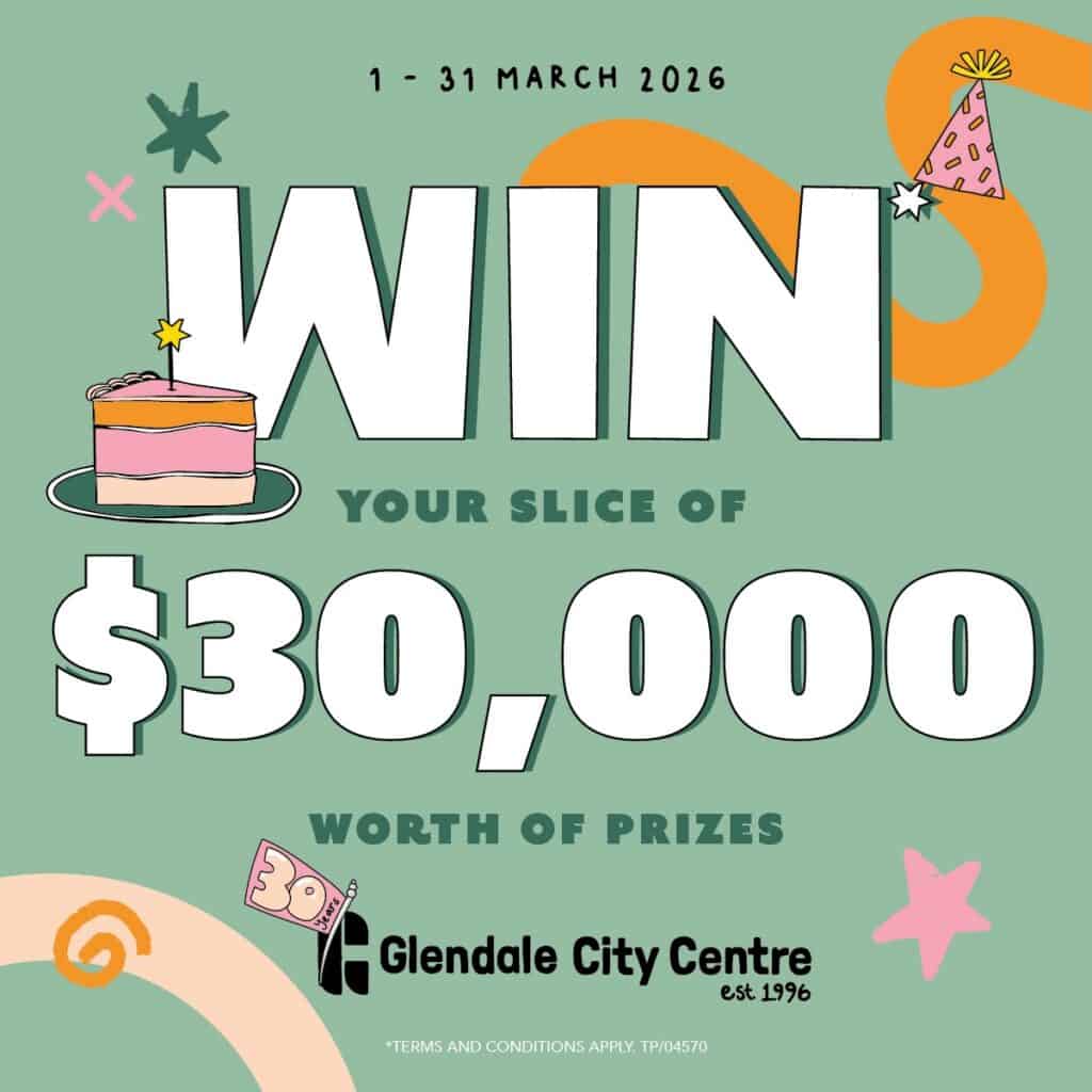 For three decades, Glendale City Centre has been part of local family life from weekend shopping trips and Santa photos to coffee catch-ups, movie days and market mornings. Now, they’re inviting the community to celebrate this milestone with a month of fun, prizes and family-friendly activities including a big birthday party celebration on Saturday 28 March.