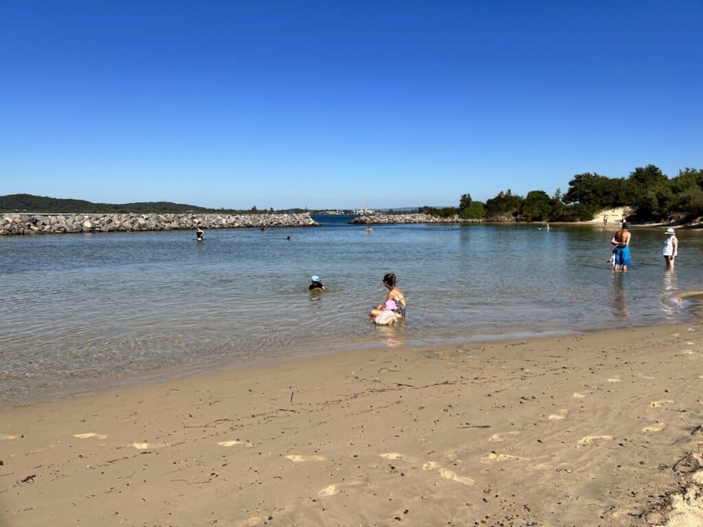 It’s a beautiful spot to hang out and splash in the shallow water. Bring sun shelter and beach toys to play in the water and dig in the sand as you might be here a while.