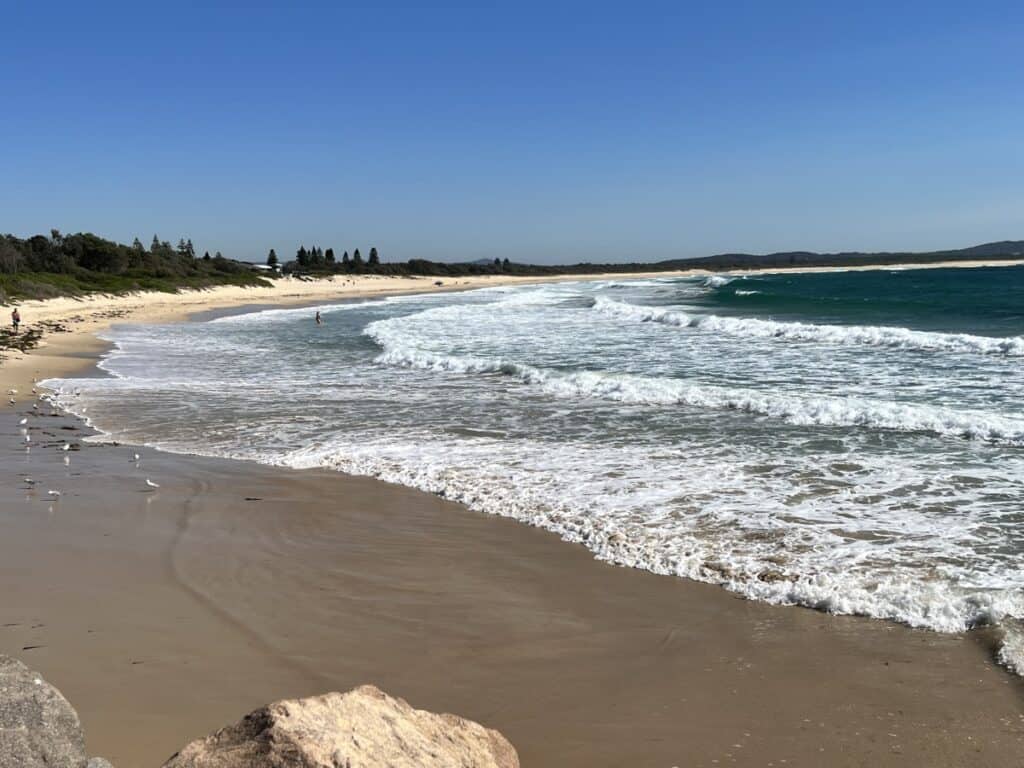 You can walk out on the breakwall and see great views of Blacksmiths Beach and beyond.