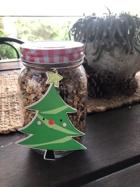- Pour into glass jars and decorate with Christmas ribbon or material and a little note with ingredients for your loved ones. Enjoy with milk or yoghurt!