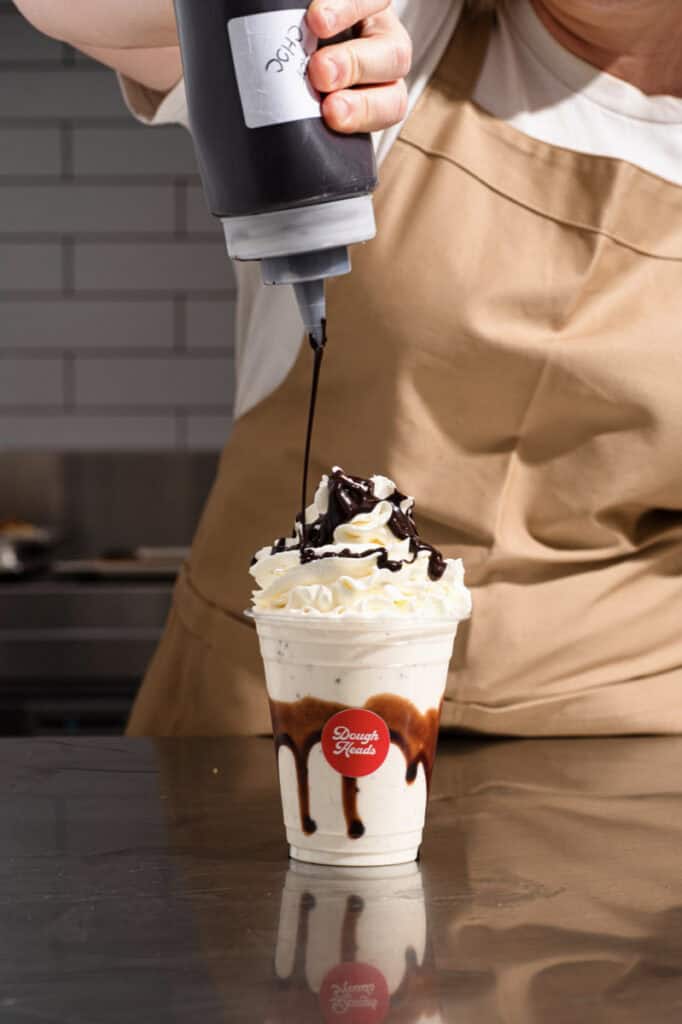 Five legendary flavours are always on the menu: Cinnamon, Original Glaze, Nutella, Salted Caramel and Gaytime. On top of that, we drop three more flavours every month, plus two vegan flavour options and two low-gluten flavour options, so everyone can join the dough-liciousness.Need coffee with that doughnut? We proudly serve Floozy Coffee, locally roasted just down the road. Grab your favourite hot or iced drink. Plus, we have milkshakes, thickshakes, DOUGHshakes and gelato shakes, with a bunch of different flavours available!