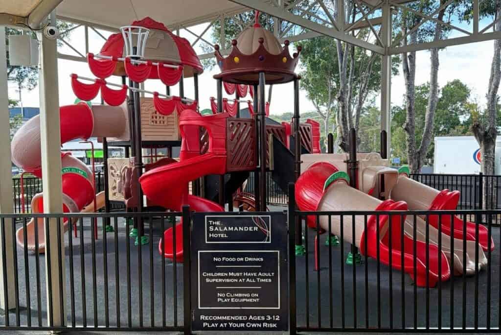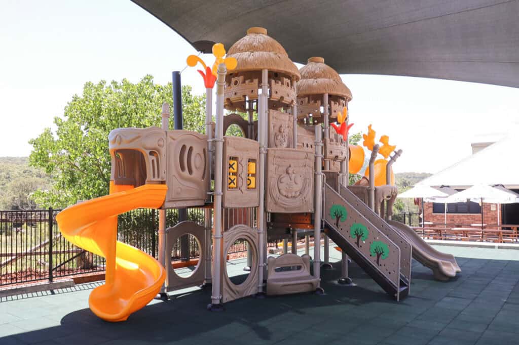 The great outdoor, undercover area at the The Bradford Hotel has a huge, fenced, bright and colourful kids playground with lots of slides and activities to keep kids entertained.