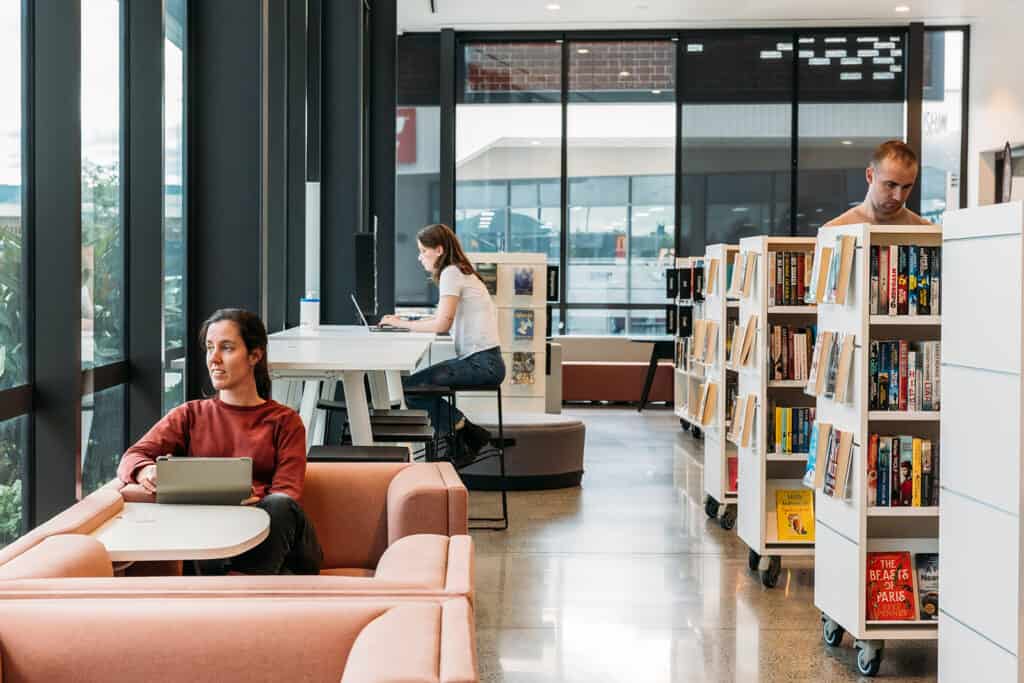 The venue features a contemporary library area and casual hire spaces for the community to gather and connect. With indoor and outdoor areas available, spaces for public art and exhibitions, the Fab Lab, Café and parking available onsite, the Windale Hub, bilyabayi is a venue with space for everyone.