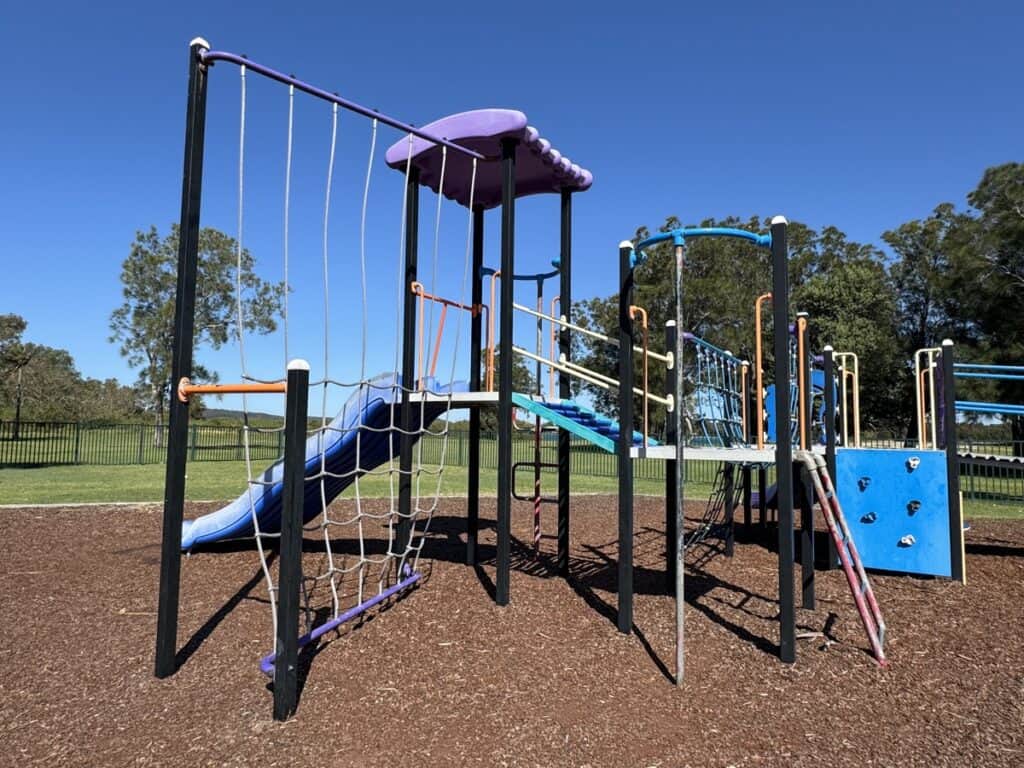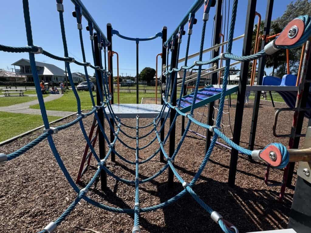 There’s a wobbly, small slide and climbing wall for young kids while older kids can indulge their inner monkey with numerous climbing equipment.