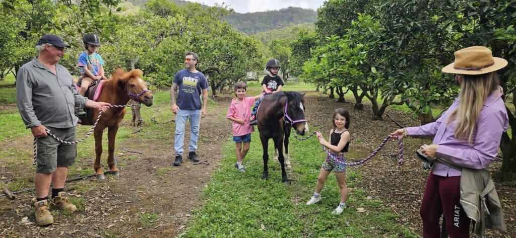 As well as orange picking, there’s plenty of other fun for the kids. Your family has the option of taking a free hay cart ride to the orchards. There’s also kids pony rides for $15 per child.