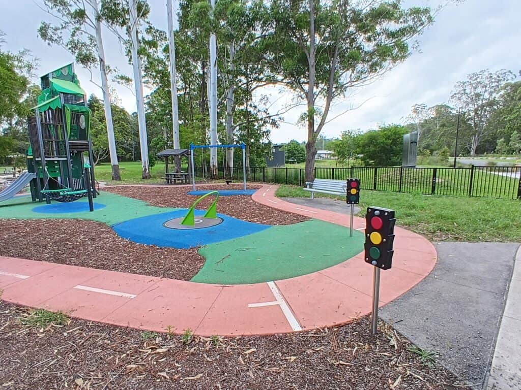 This playground features a great kids scooter/biking area designed to mimic real roads. Complete with traffic signs, traffic lights, and a ‘refueling station’ where kids can stop to ‘fill up’ using the adorable fuel pump. If you have a little scooter enthusiast it’s definitely worth the extra drive to Bridges Hill Park Playground as once they tire of the scooter track they can scooter around on the wide, concrete paths that weave through the playground or play on the amazing array of equipment. Read more about Bridges Hill Park Playground.