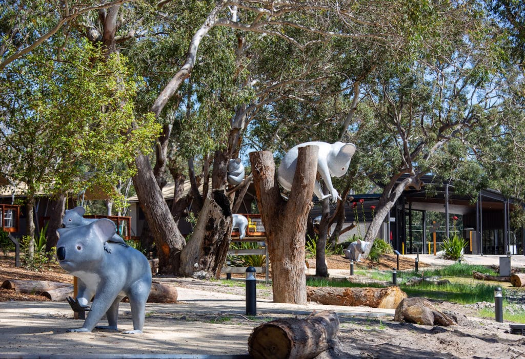 Kids and adults alike can learn about the dangers that koalas face such as loss of habitat, cars and disease. One of the sculptures provides an opportunity to “feed” the oversized koala from a real eucalypt branch.
