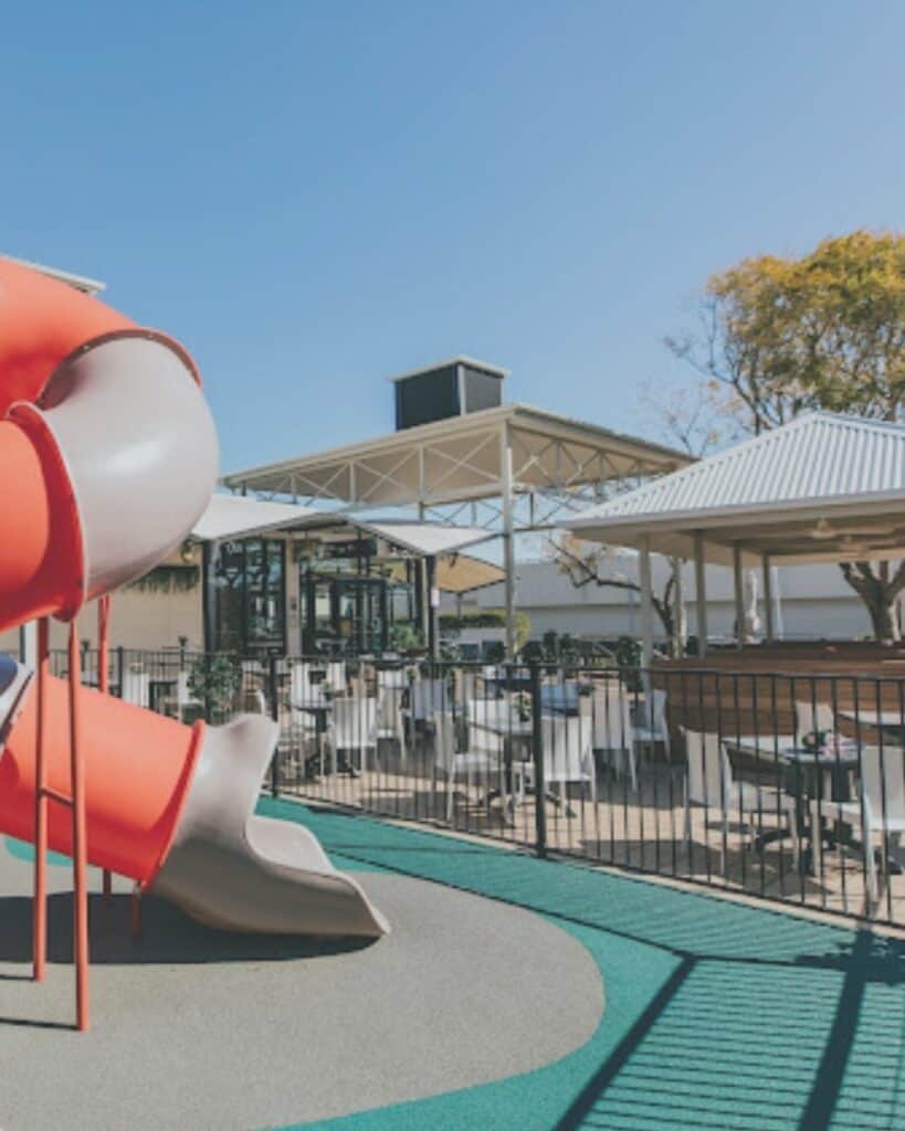 The standout feature is the large undercover outdoor fenced playground, which gives kids a chance to run, climb and play while you sit back and enjoy your meal.