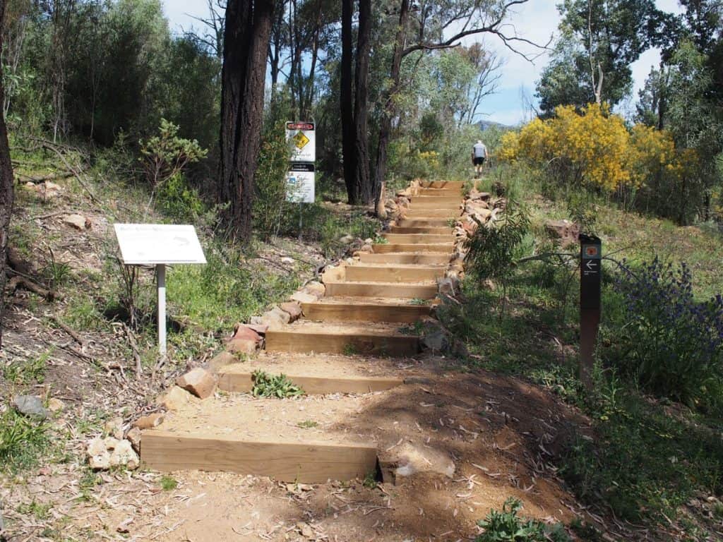 The trail starts pretty flat and then starts to climb through eucalypt forest. Fans Horizon is designated as moderate to steep and has many steps. In fact, there are over 1000 steps to climb up.
