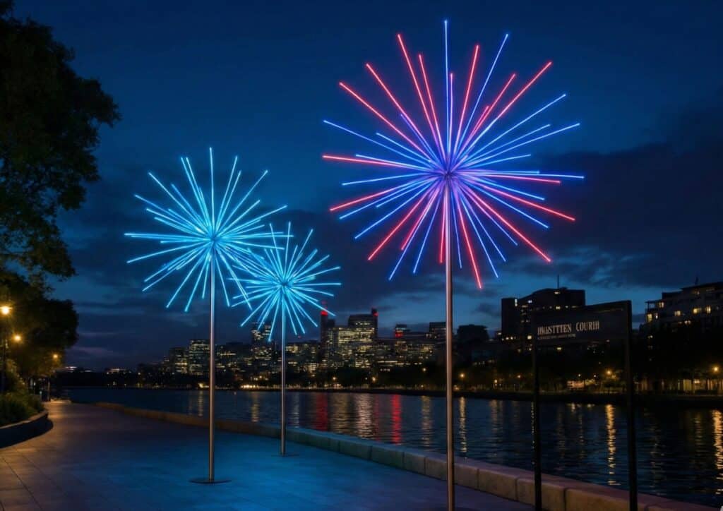 Ever noticed fireworks look like flower petals, bursting and disappearing into the night sky? In the daytime, these twenty dandelion sculptures stand still, towering above our heads at a whopping eight and a half metres tall. But come night, these flowers erupt in an explosion of colour.