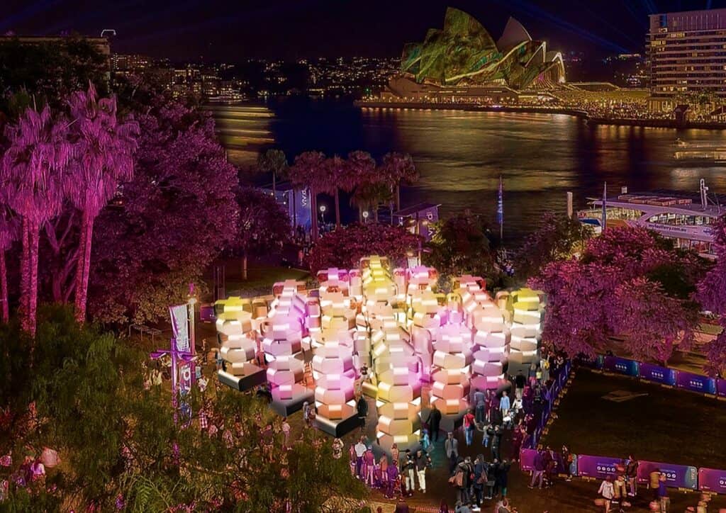 Vivid Sydney is an annual festival of light, music, ideas and food that transforms the city into a glowing playground of colour and creativity.