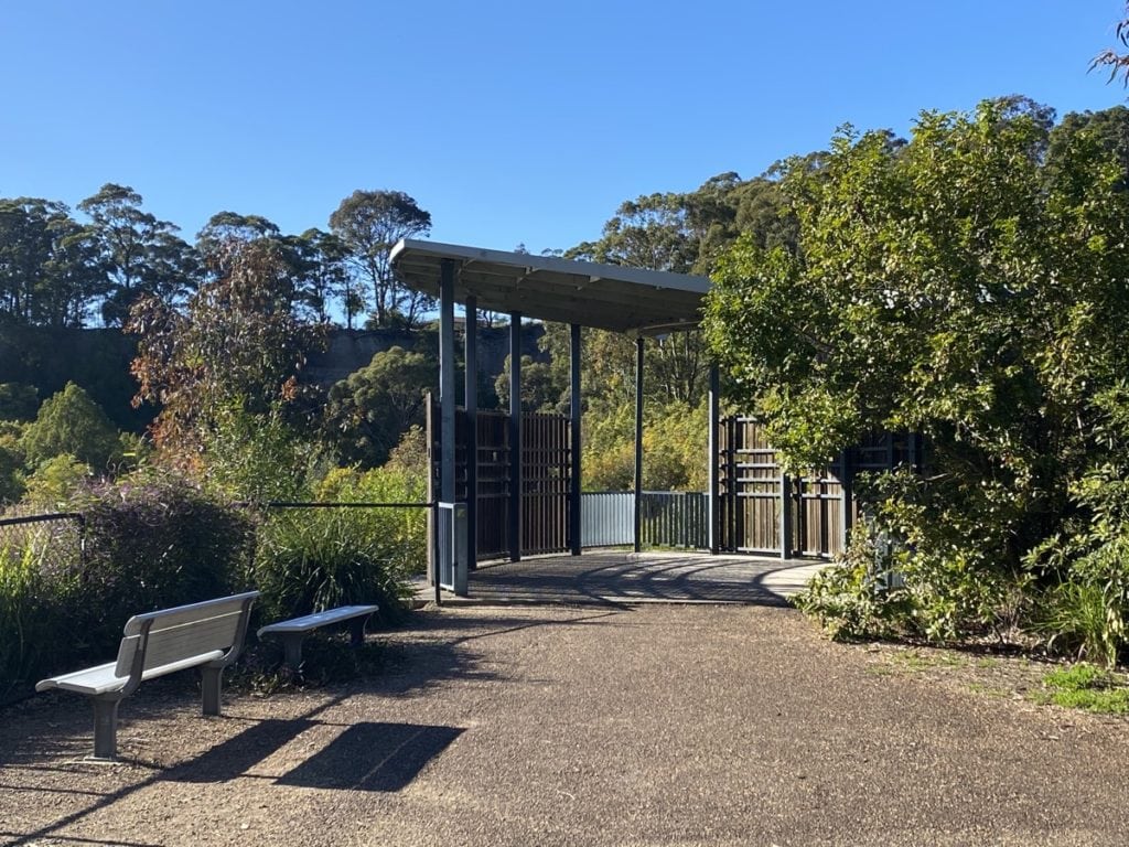 Here you will enjoy views of quarry walls, gum trees and a peaceful pond with abundant birdlife. There are spaces for adults and kids to look through at different heights.